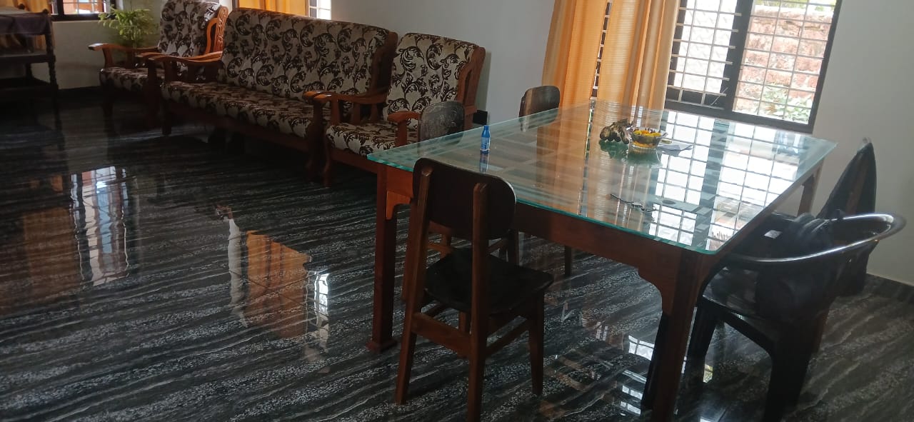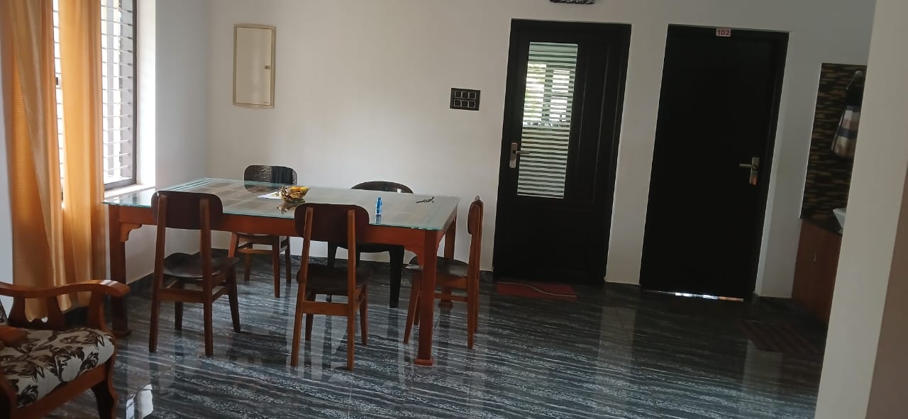 Inside, the homestay offers good shared living spaces. The living and dining area is neat and clean and can accommodate 5 people to dine together. The kitchen is fully set up for your needs- kitchen facility is available here so you can cook your choice of dishes during stay. This homestay provides all the basic necessities for a pleasant stay near Varkala.