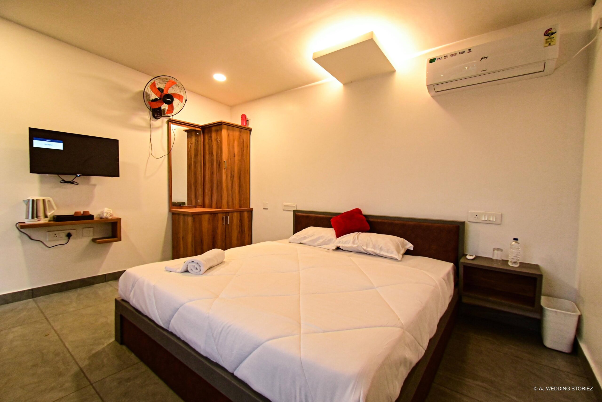 There are separate small cabin-style rooms with A-frame style too, which look like fun little getaways set among trees. The interiors as well as the bedroom setting of both A-frame stay and cabins are premium looking with all necessary amenities.