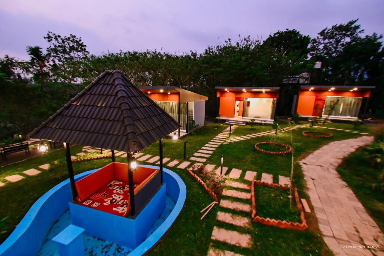 This property offers different kinds of cool and luxury stays surrounded by amazing nature and green forests. There is a main villa building with large windows and looks modern, especially when lit up at night. Large windows give you awesome views of the beautifully set up lawn and the distant hills and forests.
