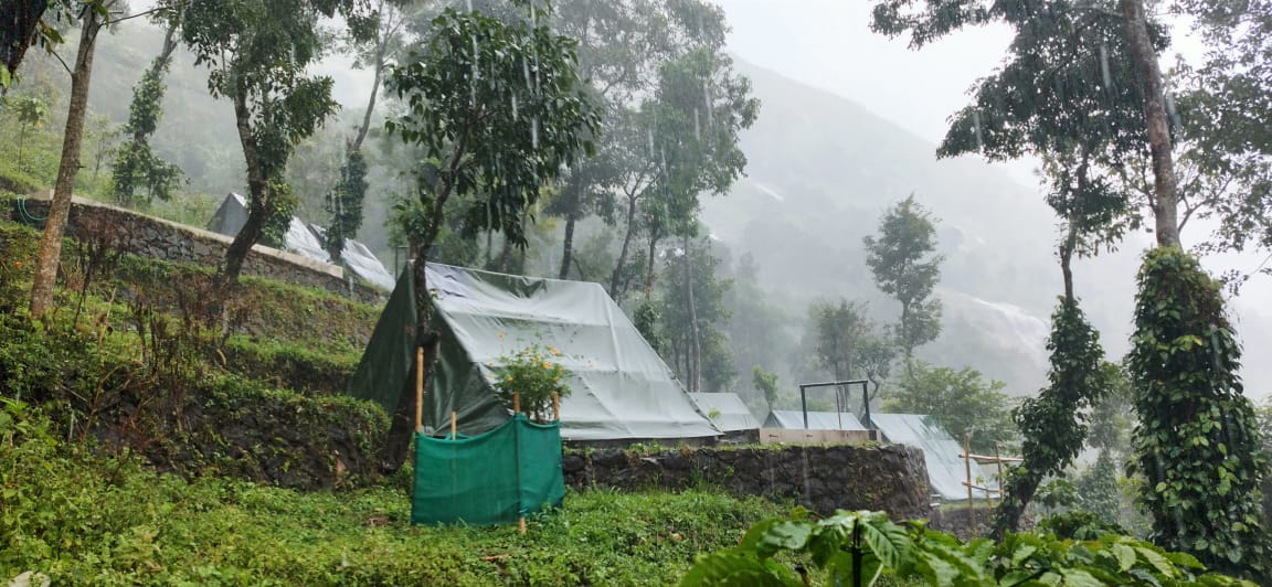 This camping site in Kuttikkanam is known for its fog-covered mornings and natural surroundings. Guests can wake up to a stunning view of hills and valleys blanketed in a soft mist that looks like a sea of clouds, providing an unforgettable sight.