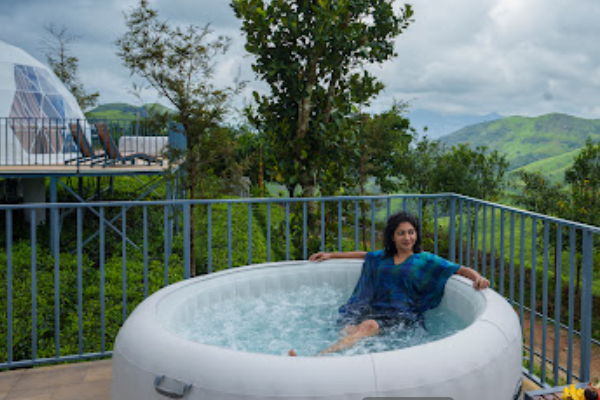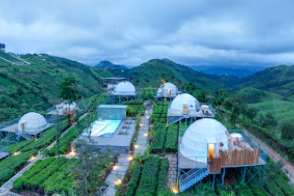 The Monticle resort is situated in Vagamon, Kerala, and is the region’s first luxury glamping resort. The panoramic views of tea plantations and mountains, combined with the experience of standing on a watchtower, make the journey worthwhile. There are four domes, each equipped with all the conveniences of a luxury cottage, so that families, friends, and honeymooners will have a comfortable and well-appointed stay. Additionally, the staff’s hospitality and the quality of the food contribute to a positive guest experience.