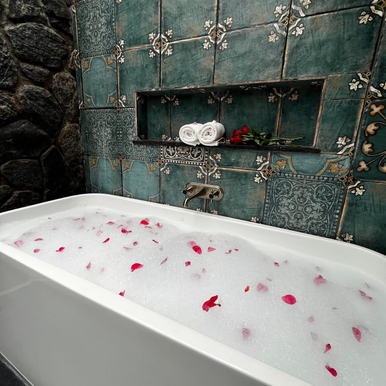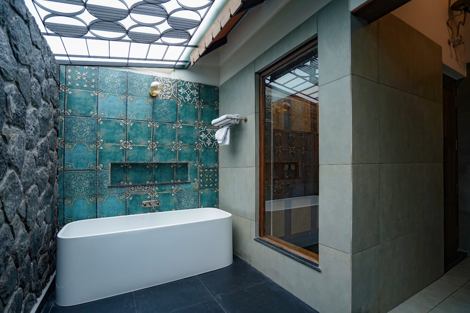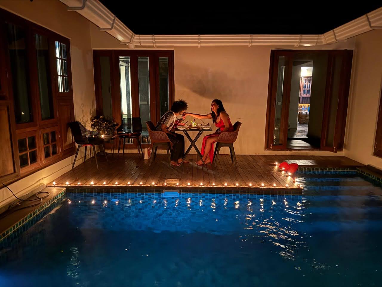 Other main highlights of this property are the private pool as well as a Jacuzzi. Both offers privacy and are surrounded by well-kept green landscaping and natural stone features, making it a relaxing spot to spend time. Inside the villa there are comfortable living spaces providing a place to sit together indoors. Also near the pool guests can have candle light dinner also.