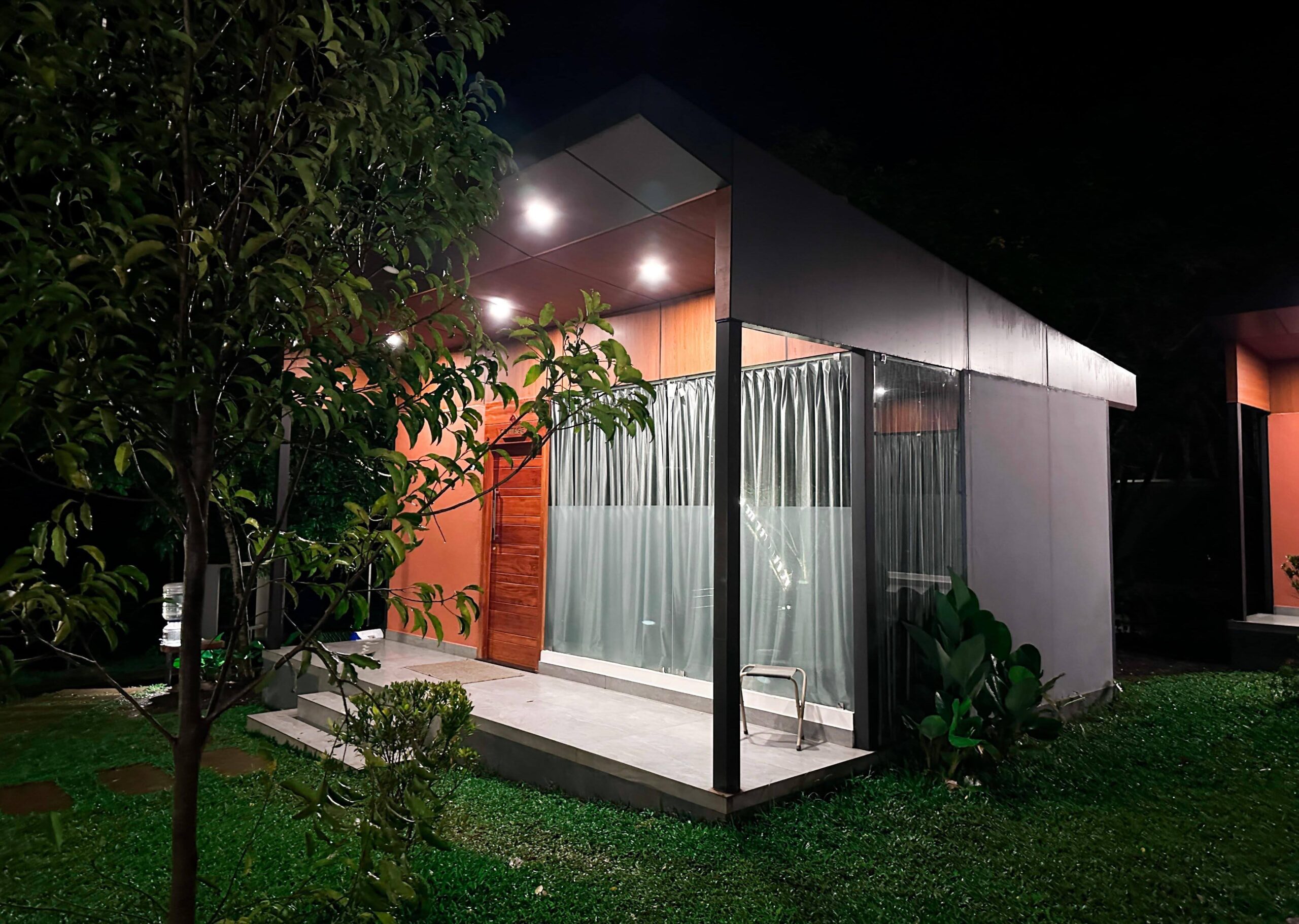 This property offers different kinds of cool and luxury stays surrounded by amazing nature and green forests. There is a main villa building with large windows and looks modern, especially when lit up at night. Large windows give you awesome views of the beautifully set up lawn and the distant hills and forests.