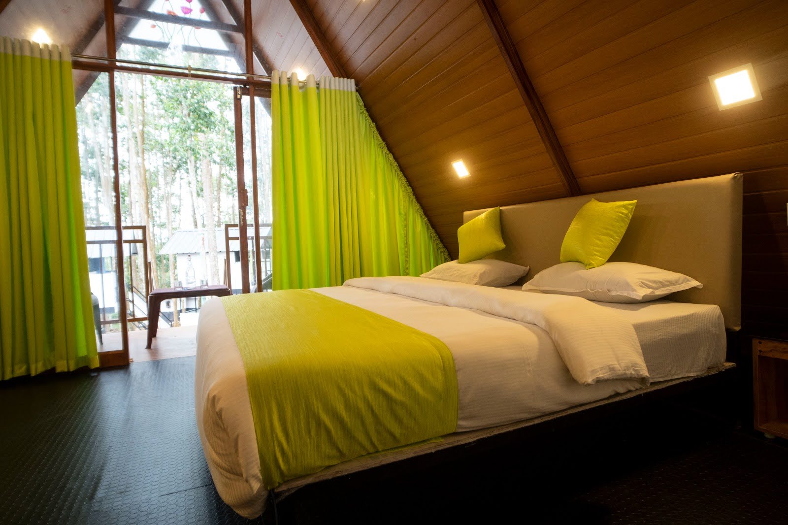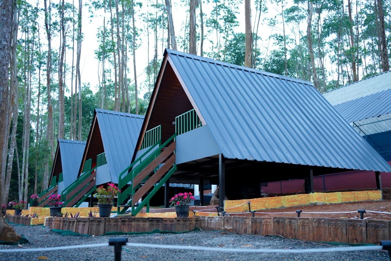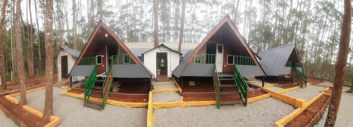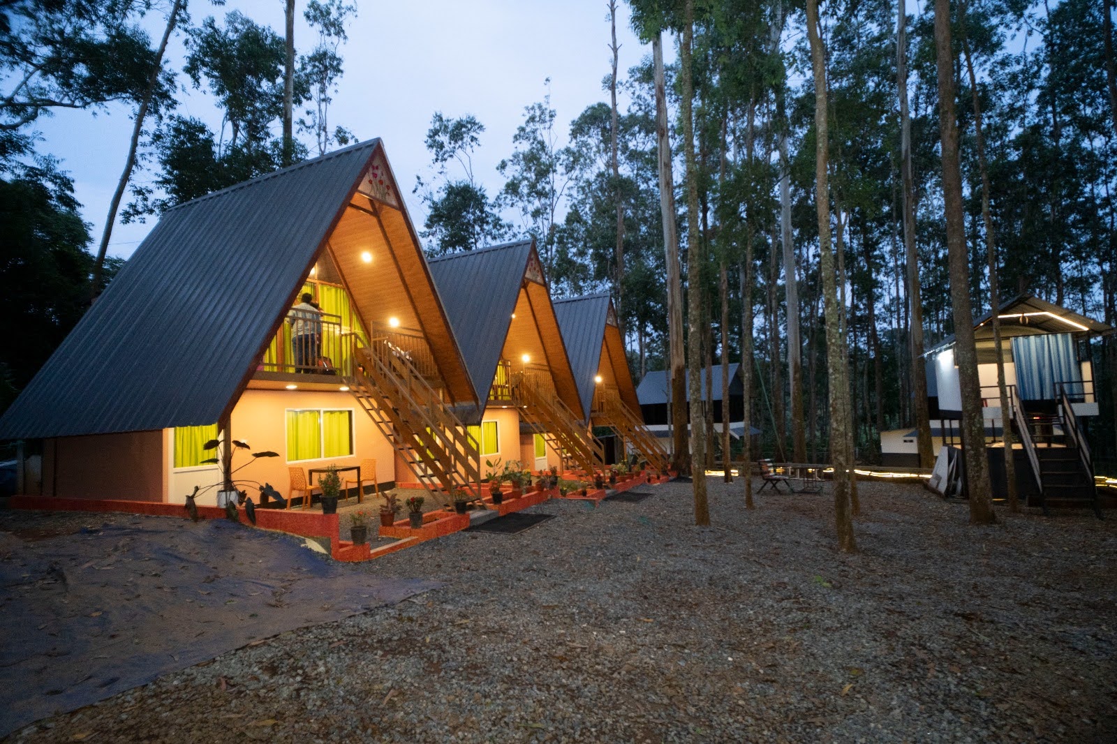 This A-Frame Swimming Pool Campsite in Munnar provides a unique stay experience for those looking for a nature stay. The campsite has several different A-frame cabin style accommodations, camp tents, and a villa also. This property is set within a natural, hill environment surrounded by forest, giving it a true nature camping feel- with better facilities.