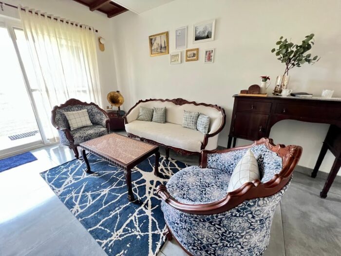 This 3BHK holiday home in Vagamon, Idukki is situated on a beautiful landscape overlooking valleys of idukki wild life sanctuary. It is surrounded by the tea plantations and offers awesome panoramic views of the mountains and valleys. The balcony view from here is thus commendable- so is the view from the façade & garden. This property is a combination of traditional and modern elements, with a modular kitchen facility, a rustic wooden dining set, and bedrooms with traditional cot.